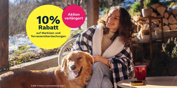 Sichern Sie sich 10 % Rabatt auf alle Markisen und Terrassenüberdachungen aus unserem Sortiment! Starten Sie jetzt mit Ihrer Planung und nutzen Sie die Gelegenheit, sich attraktive Sonderkonditionen zu sichern. Die Aktion wurde verlängert und läuft noch bis zum 22.03.2026 (Nicht mit anderen Aktionen kombinierbar).