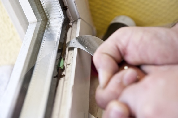 Zunächst haben die Mettler GmbH-Monteure die Dichtungen und die Glasleisten der Fenster entfernt.
