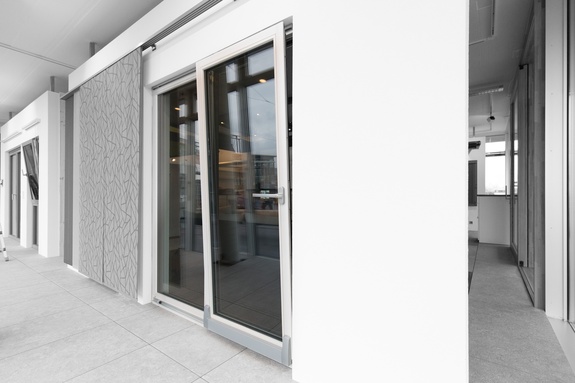 Ausführung: Leichtlauf-Schiebewand w17-c mit Festverglasung Lite w50-c